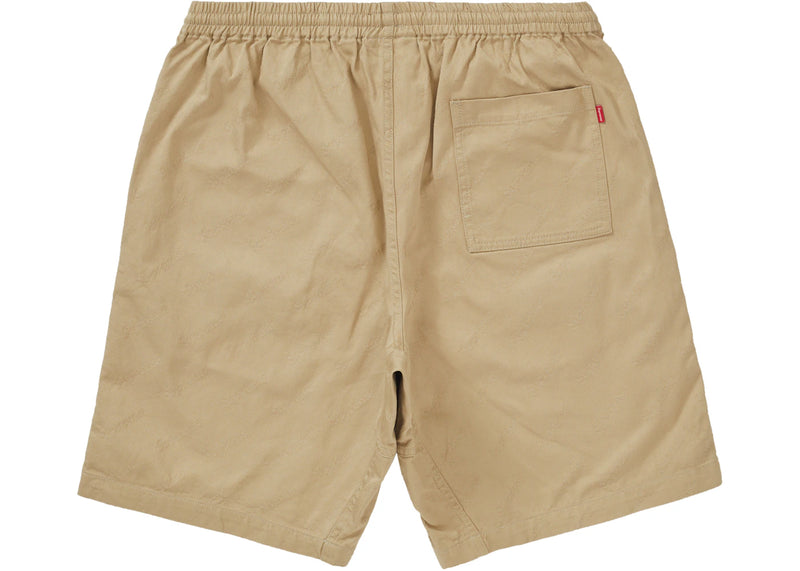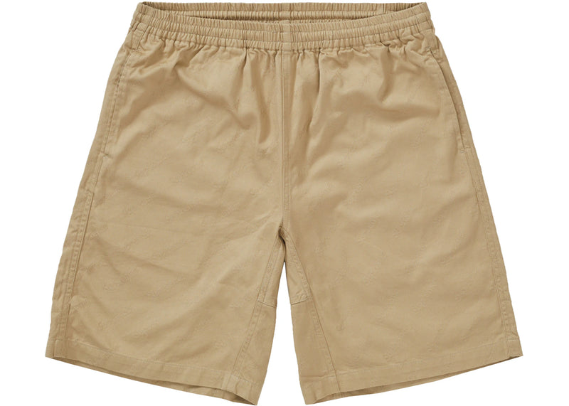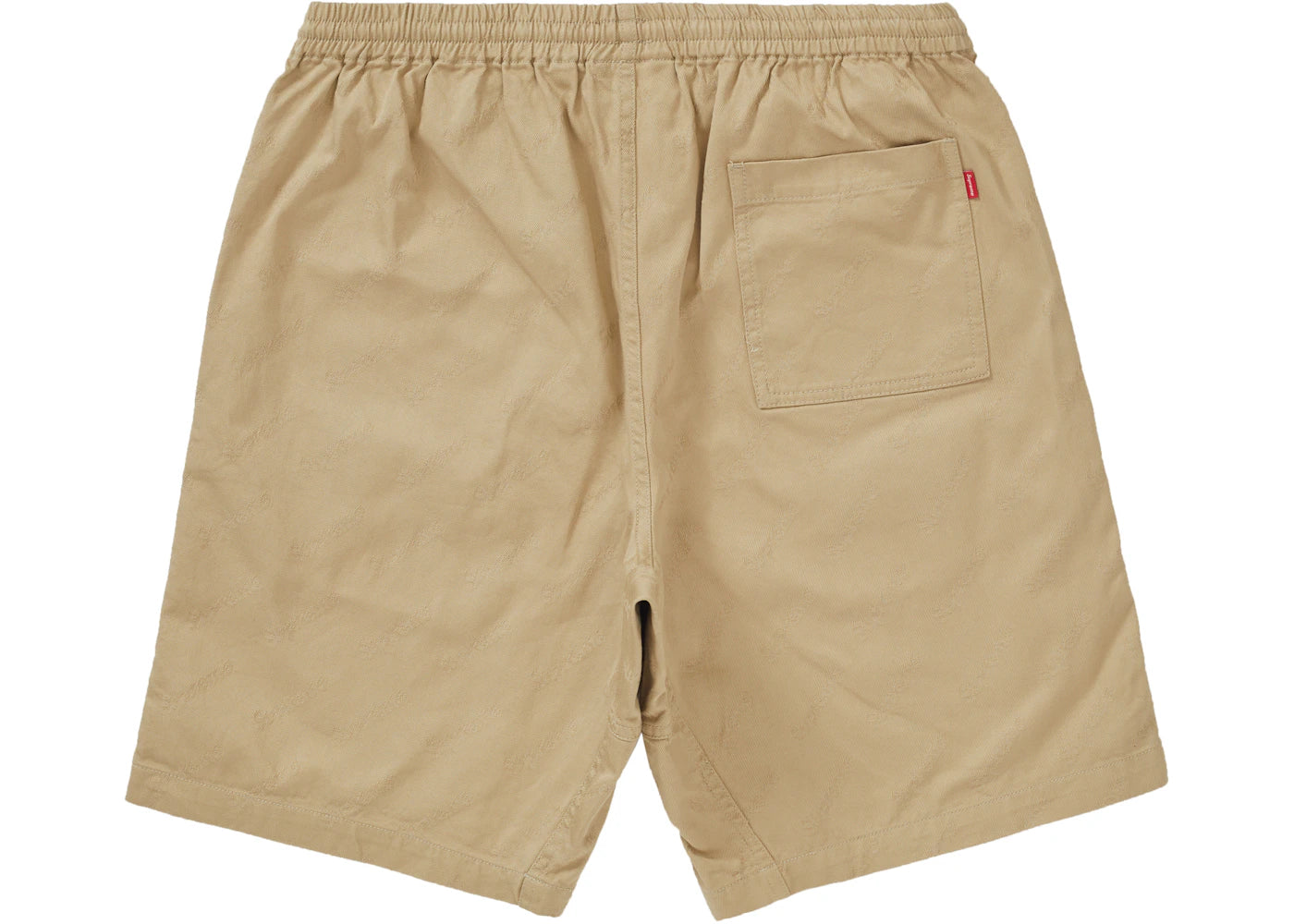 The Supreme Jacquard Logo Twill Short Tan is now available at Side Kicks!