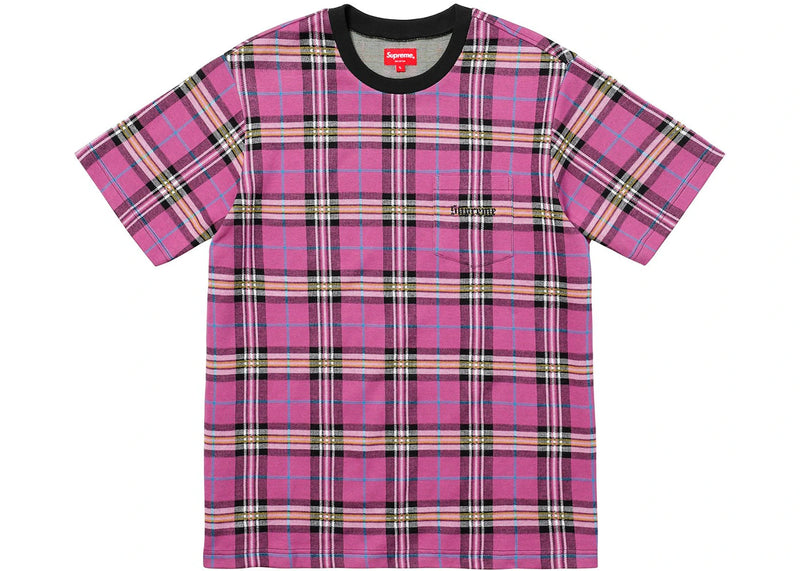 The Supreme Jacquard Tartan Plaid Pocket Tee Pink is now available at Side Kicks!
