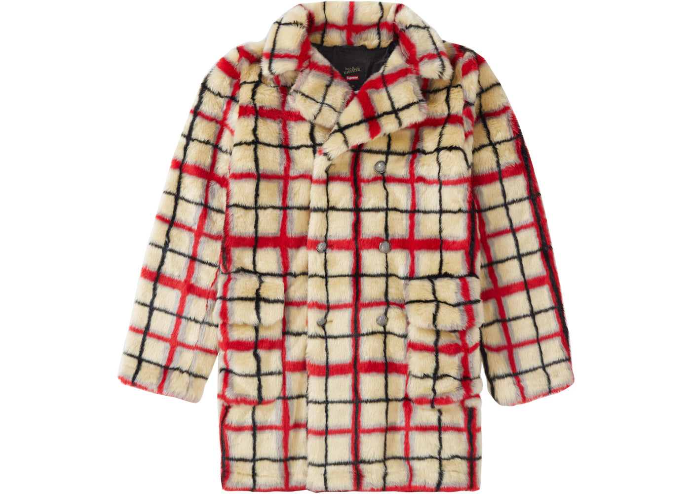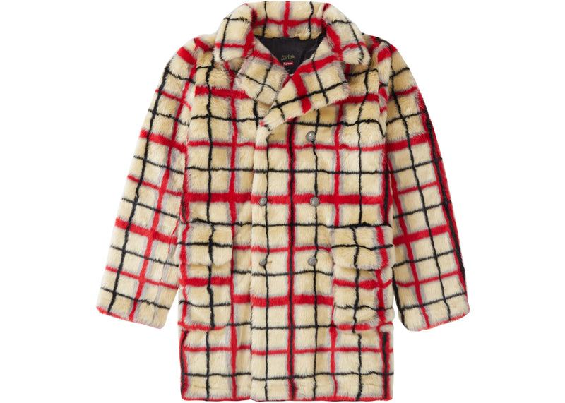 The Supreme Jean Paul Gaultier Double Breasted Plaid Faux Fur Coat OffWhite is now available at Side Kicks!