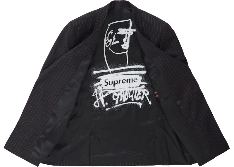 The Supreme Jean Paul Gaultier Pinstripe Double Breasted Blazer Black is now available at Side Kicks!