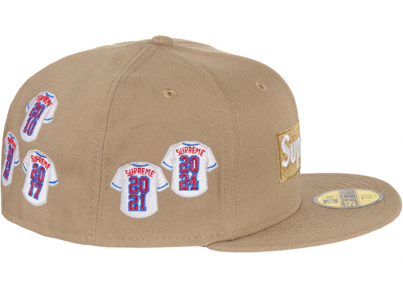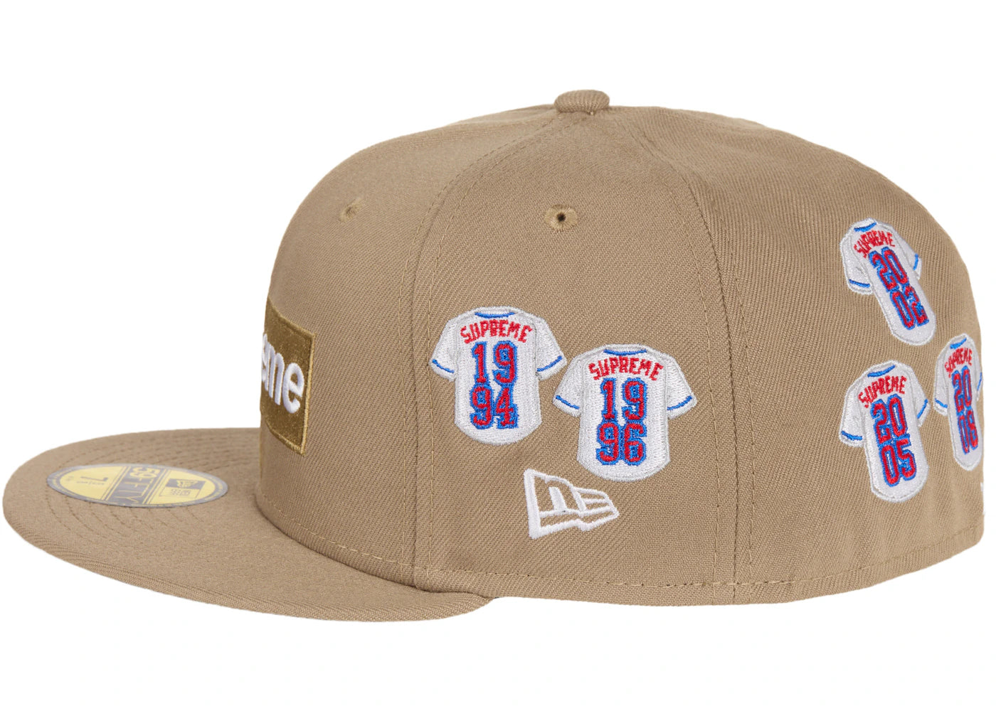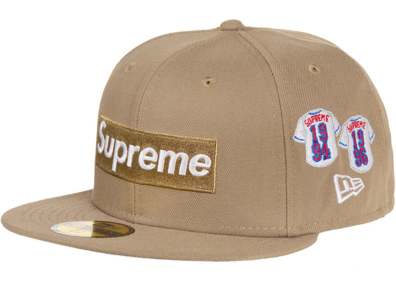 The Supreme Jerseys Box Logo New Era Fitted Hat Khaki is now available at Side Kicks!