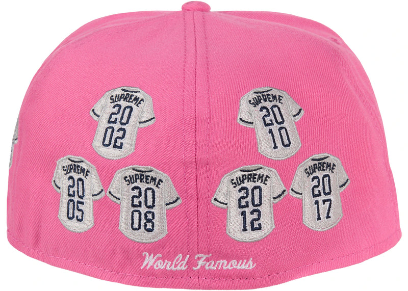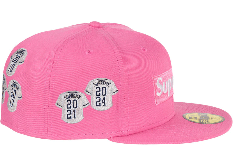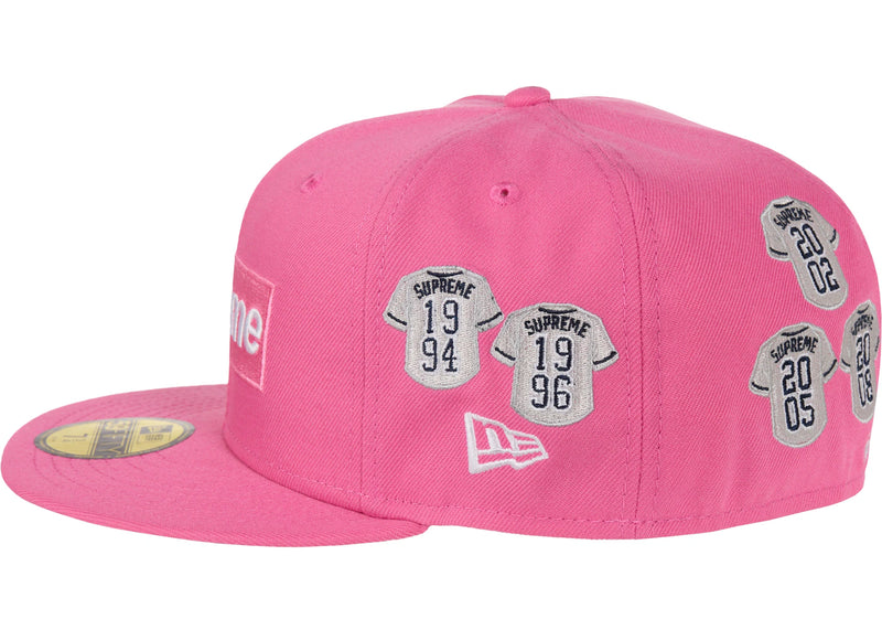 The Supreme Jerseys Box Logo New Era Fitted Hat Pink is now available at Side Kicks!