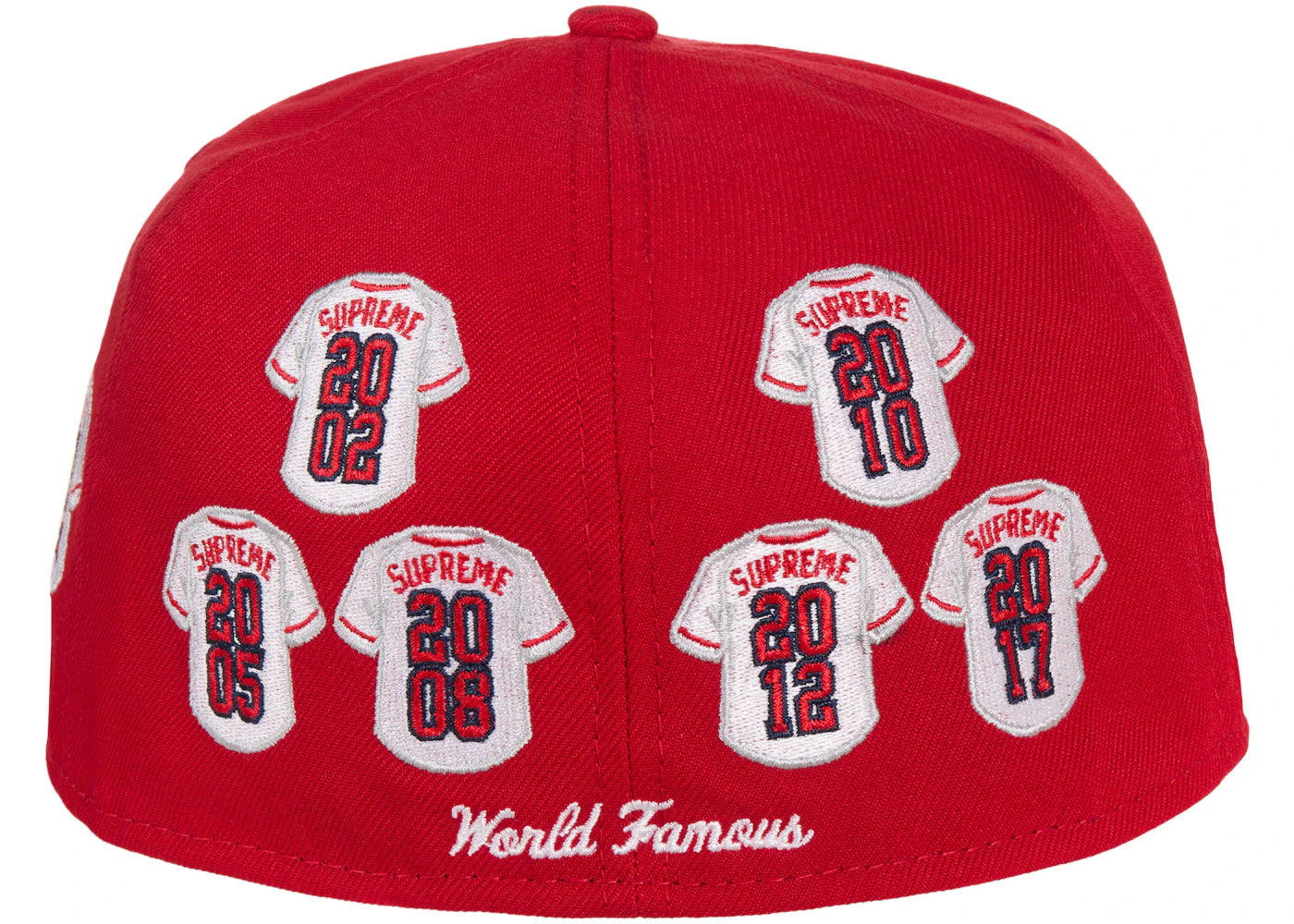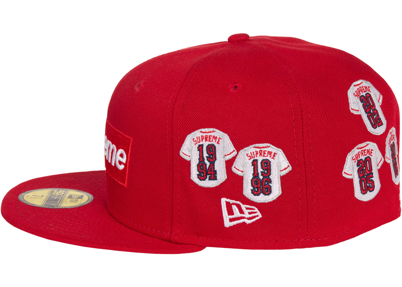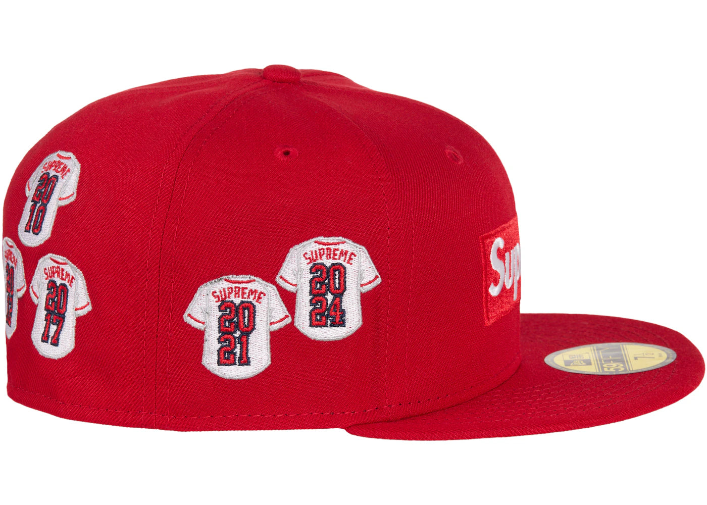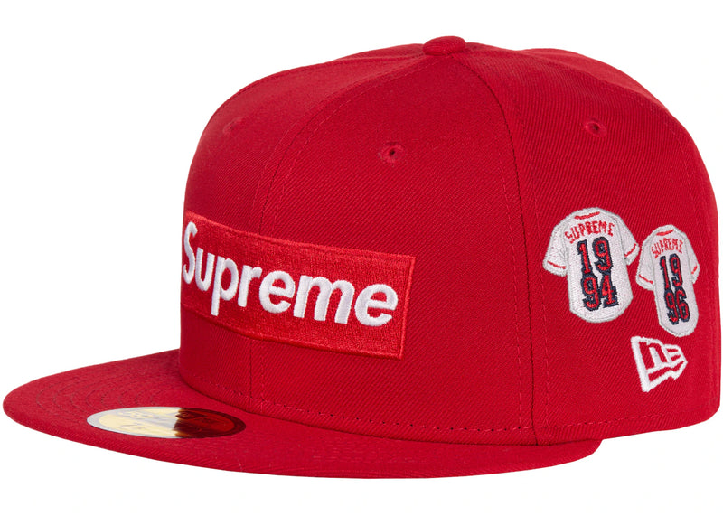 The Supreme Jerseys Box Logo New Era Fitted Hat Red is now available at Side Kicks!