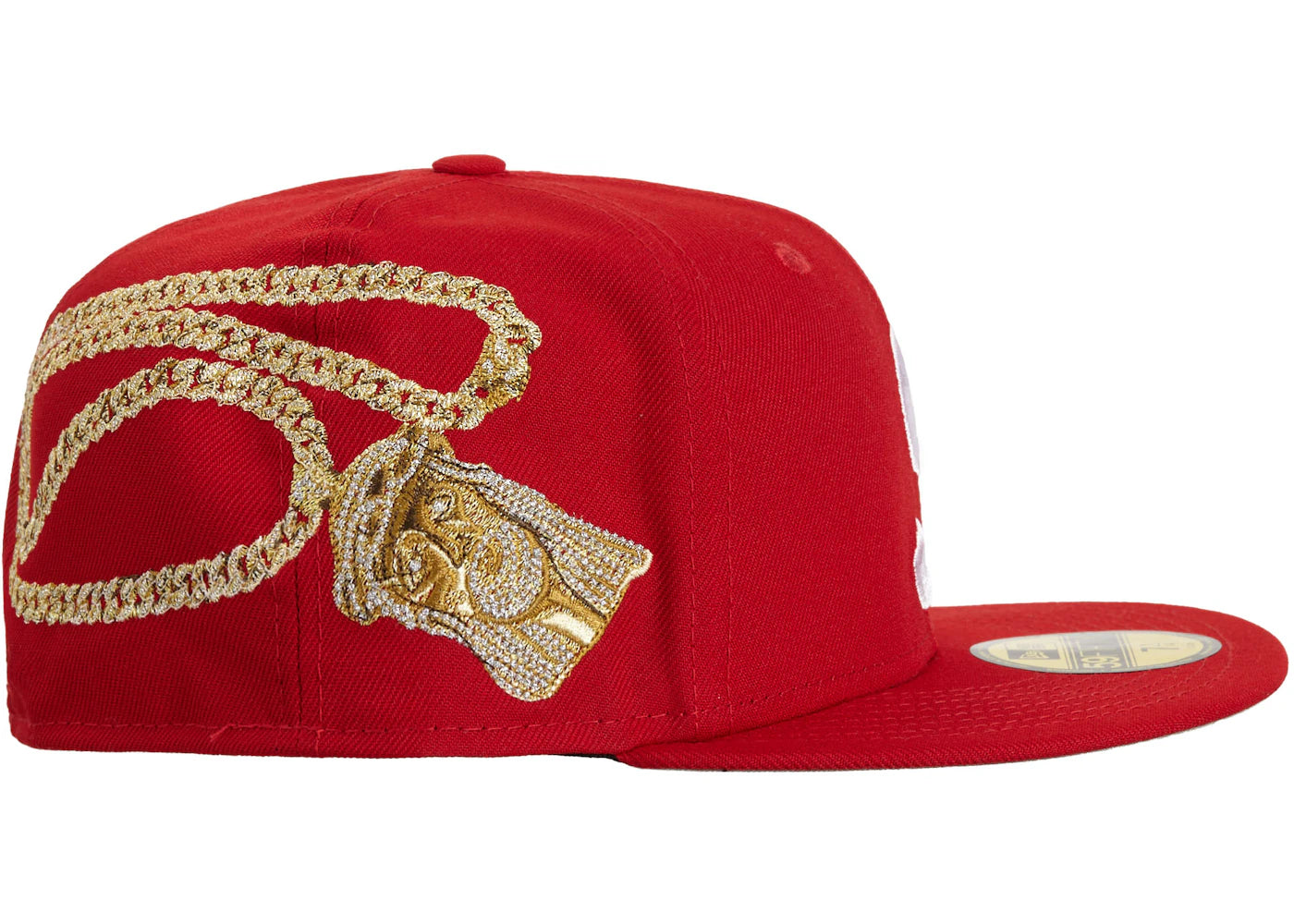 The Supreme Jesus Piece S Logo New Era 59Fifty Hat Red is now available at Side Kicks!