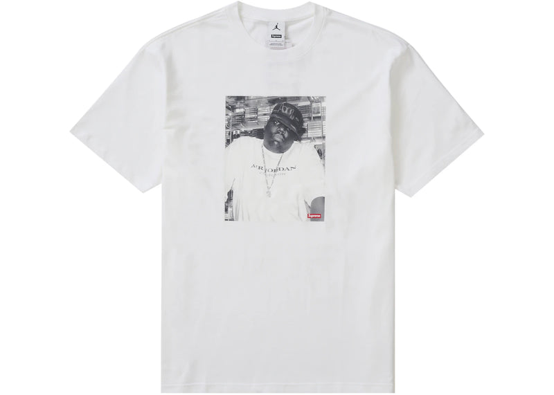 The Supreme Jordan Biggie S/S Top White is now available at Side Kicks!