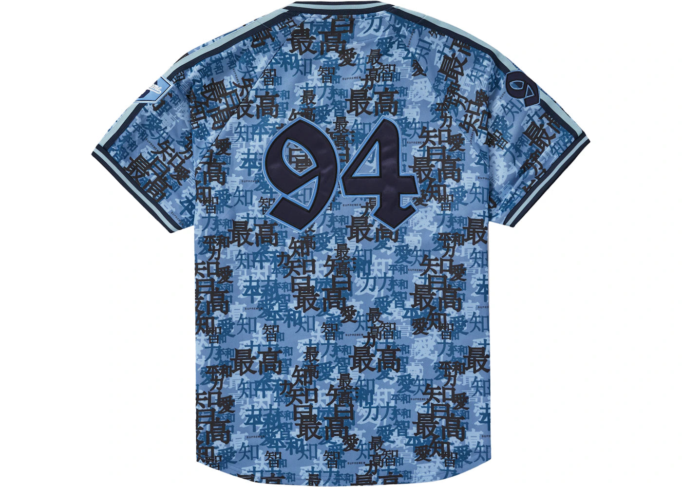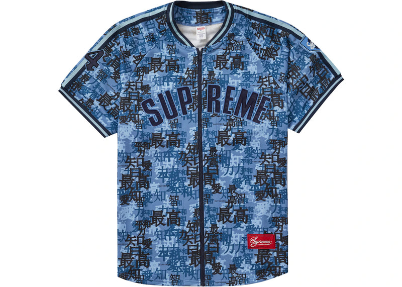 Supreme Kanji Camo Zip Up Baseball Jersey Blue