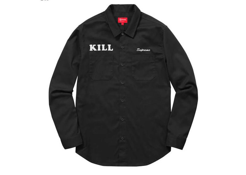 The Supreme Kill Work Shirt Black is now available at Side Kicks!