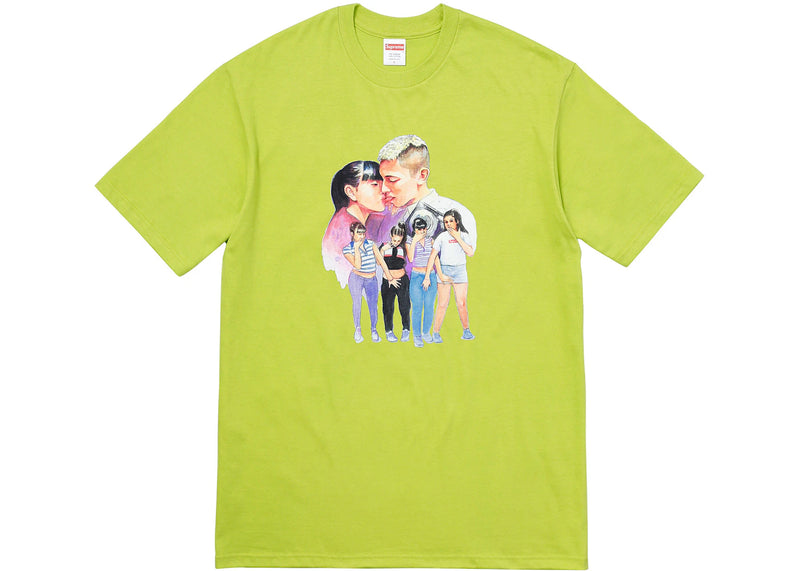 The Supreme Kiss Tee Lime is now available at Side Kicks!