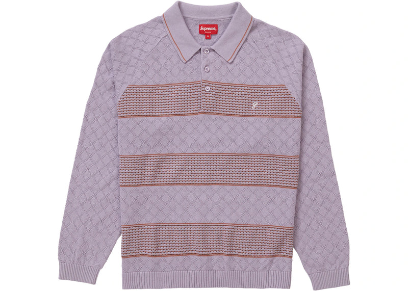 The Supreme Knit Stripe L/S Polo Dusty Light Purple is now available at Side Kicks!