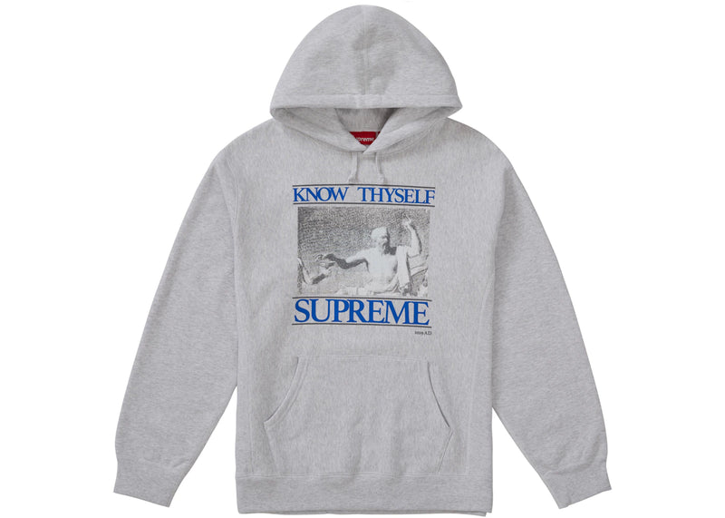 The Supreme Know Thyself Hooded Sweatshirt Ash Grey is now available at Side Kicks!