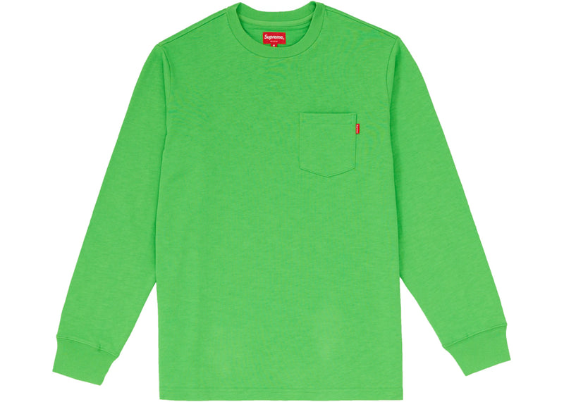 The Supreme L/S Pocket Tee (FW18) Lime is now available at Side Kicks!