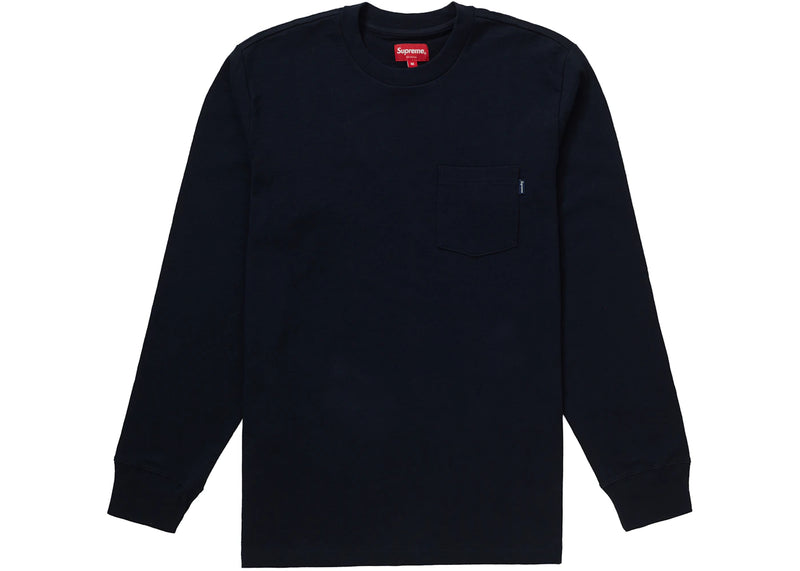 The Supreme L/S Pocket Tee Navy is now available at Side Kicks!