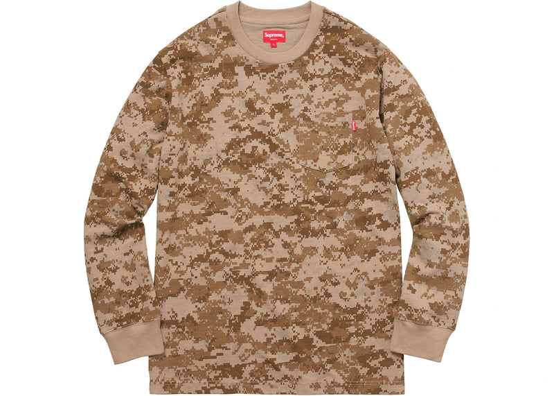 The Supreme L/S Pocket Tee Tan Digi Camo is now available at Side Kicks!