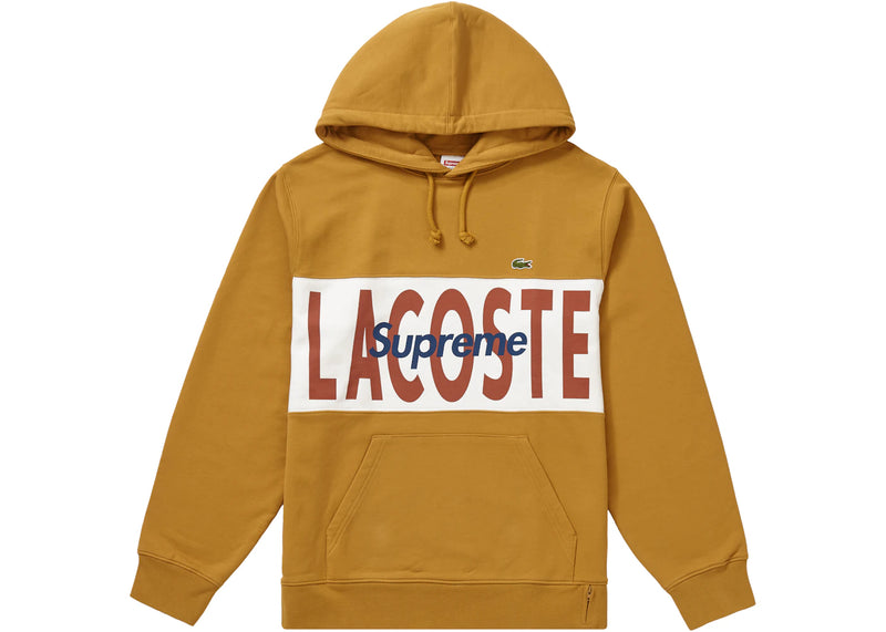 The Supreme LACOSTE Logo Panel Hooded Sweatshirt Gold is now available at Side Kicks!