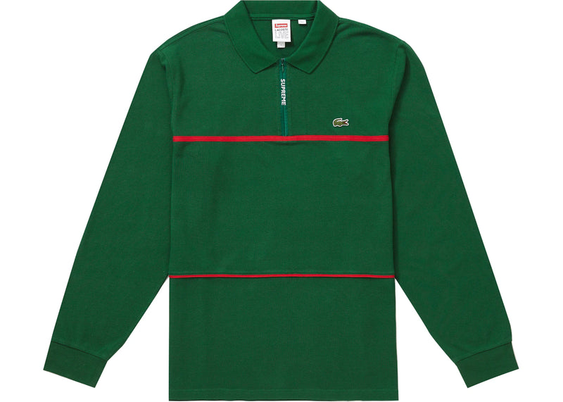 The Supreme LACOSTE Pique Zip L/S Polo Green is now available at Side Kicks!