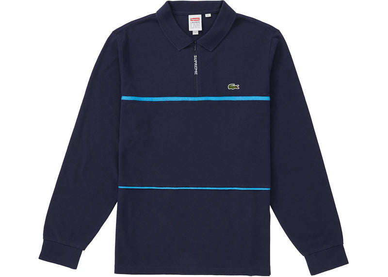 The Supreme LACOSTE Pique Zip L/S Polo Navy is now available at Side Kicks!