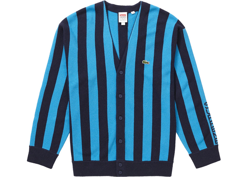 The Supreme LACOSTE Stripe Cardigan Navy is now available at Side Kicks!