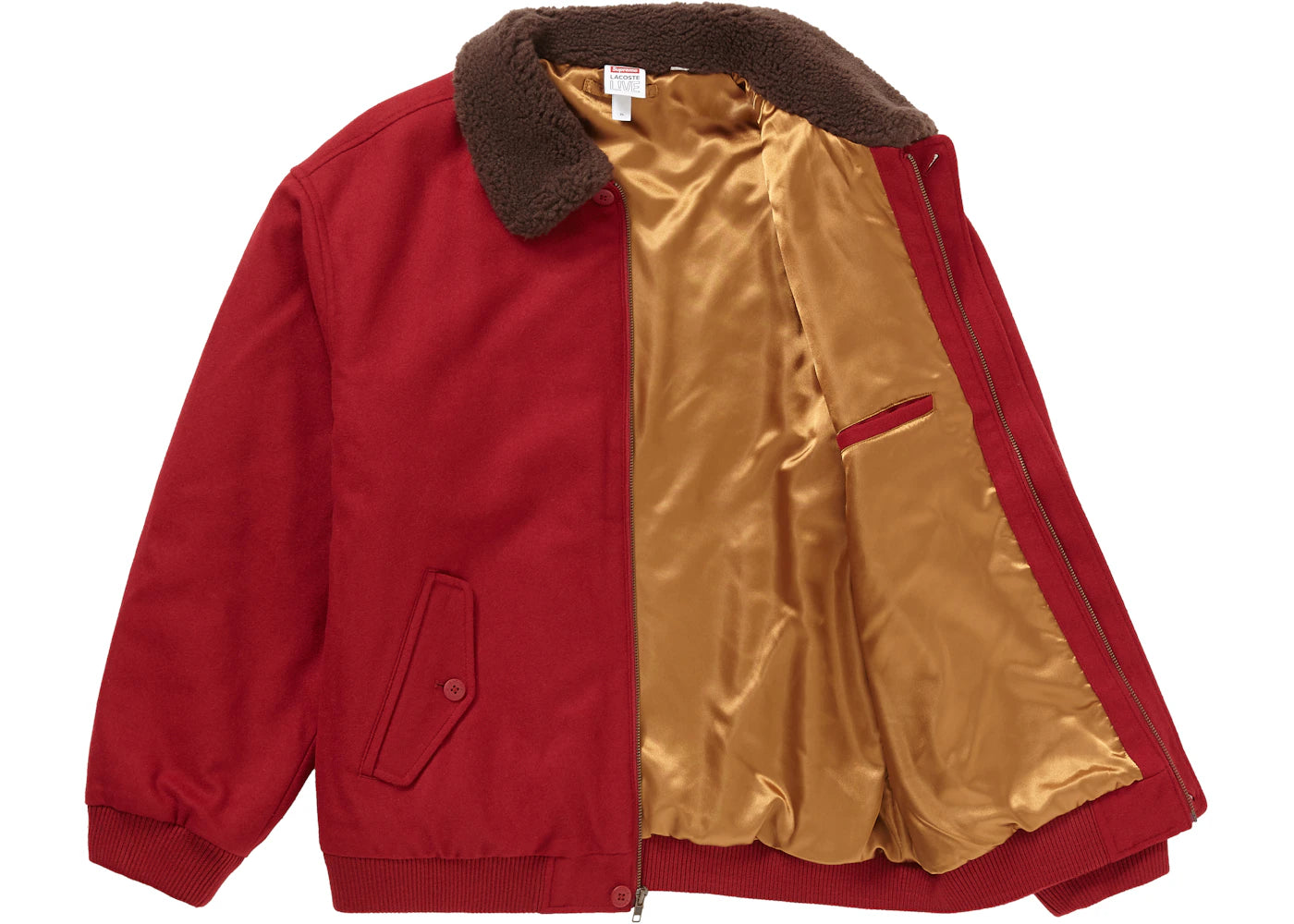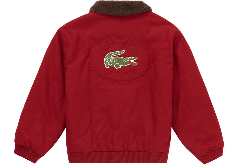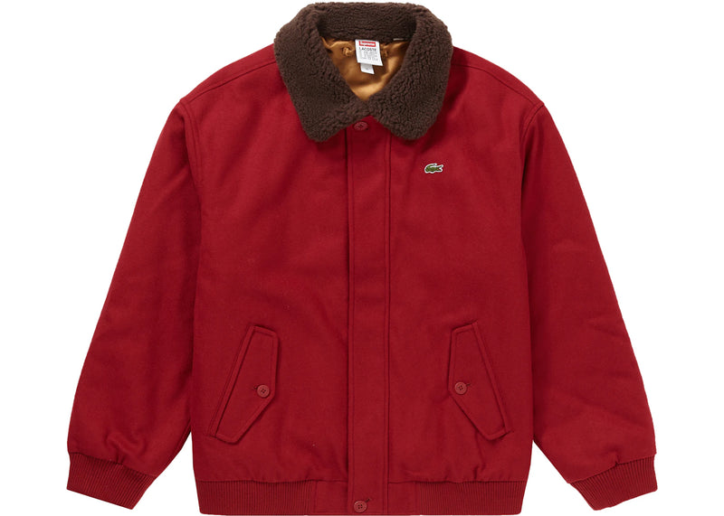 The Supreme LACOSTE Wool Bomber Jacket Red is now available at Side Kicks!