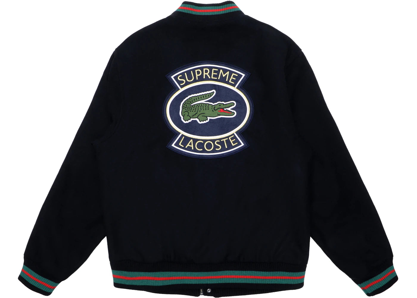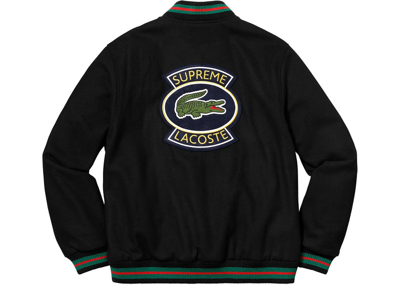 The Supreme LACOSTE Wool Varsity Jacket Black is now available at Side Kicks!