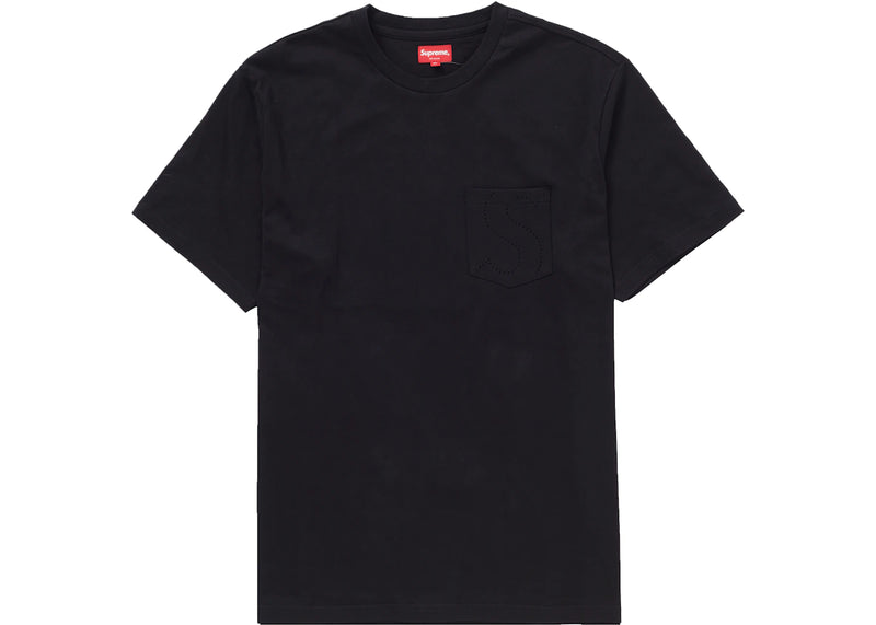 The Supreme Laser Cut S Logo Pocket Tee Black is now available at Side Kicks!