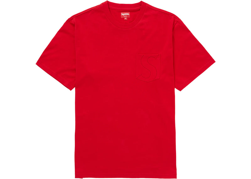 The Supreme Laser Cut S Logo Pocket Tee Red is now available at Side Kicks!