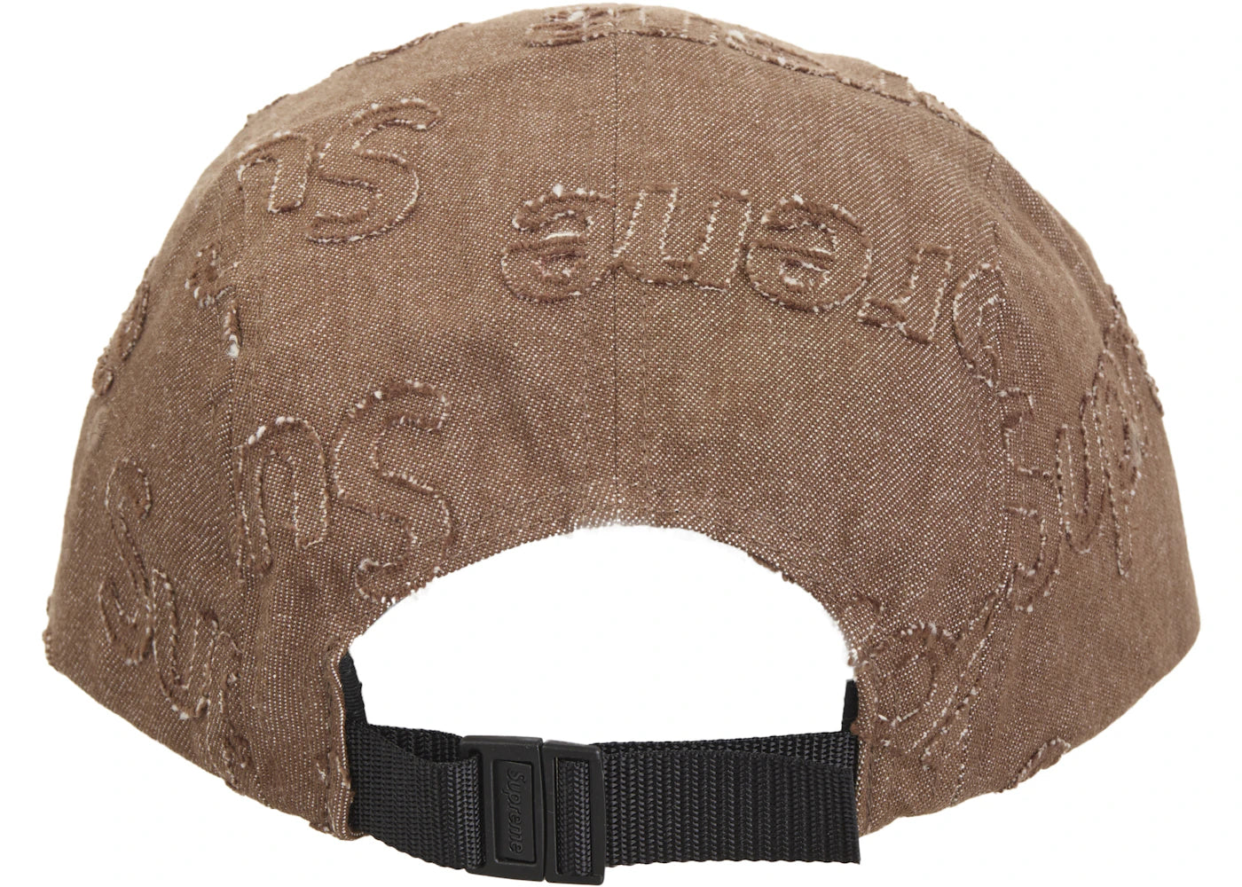 The Supreme Lasered Denim Camp Cap Brown is now available at Side Kicks!