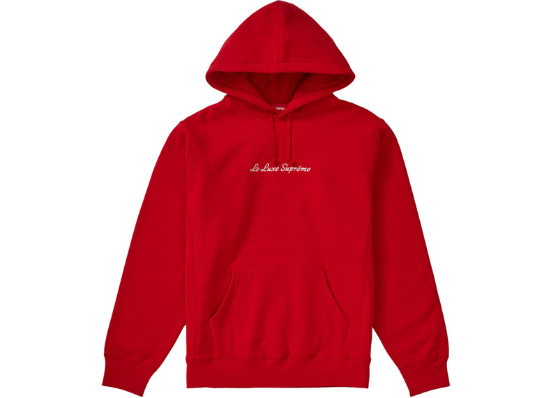 The Supreme Le Luxe Hooded Sweatshirt Red is now available at Side Kicks!