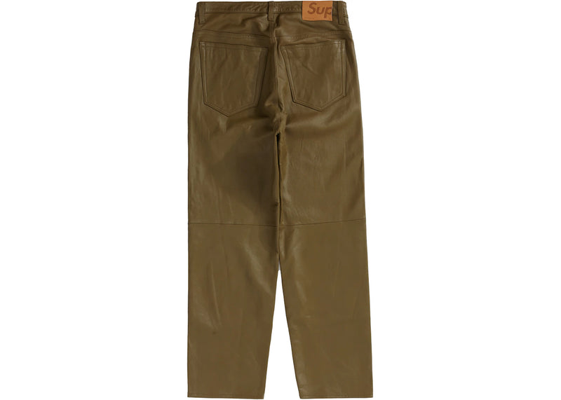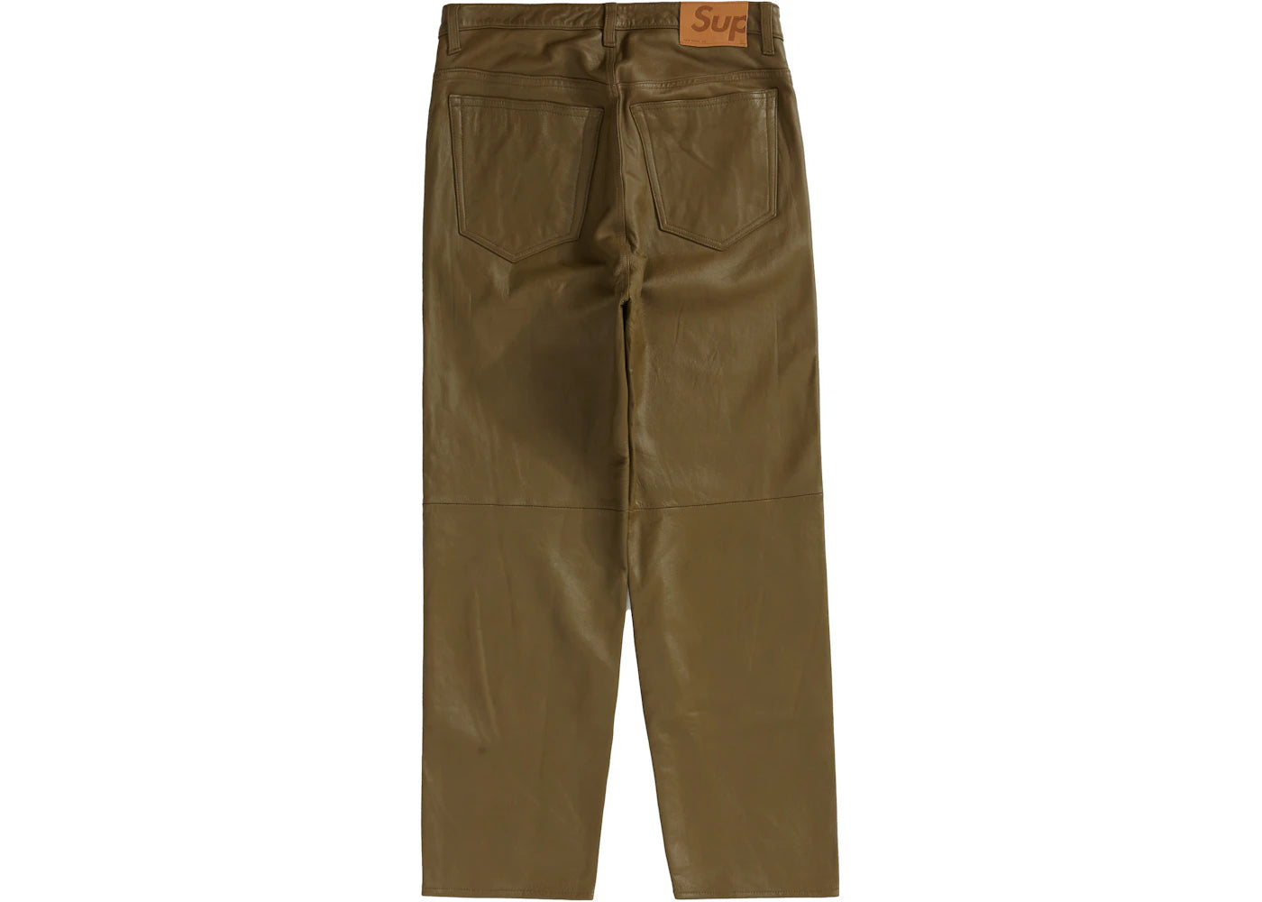 The Supreme Leather 5-Pocket Jean Olive is now available at Side Kicks!