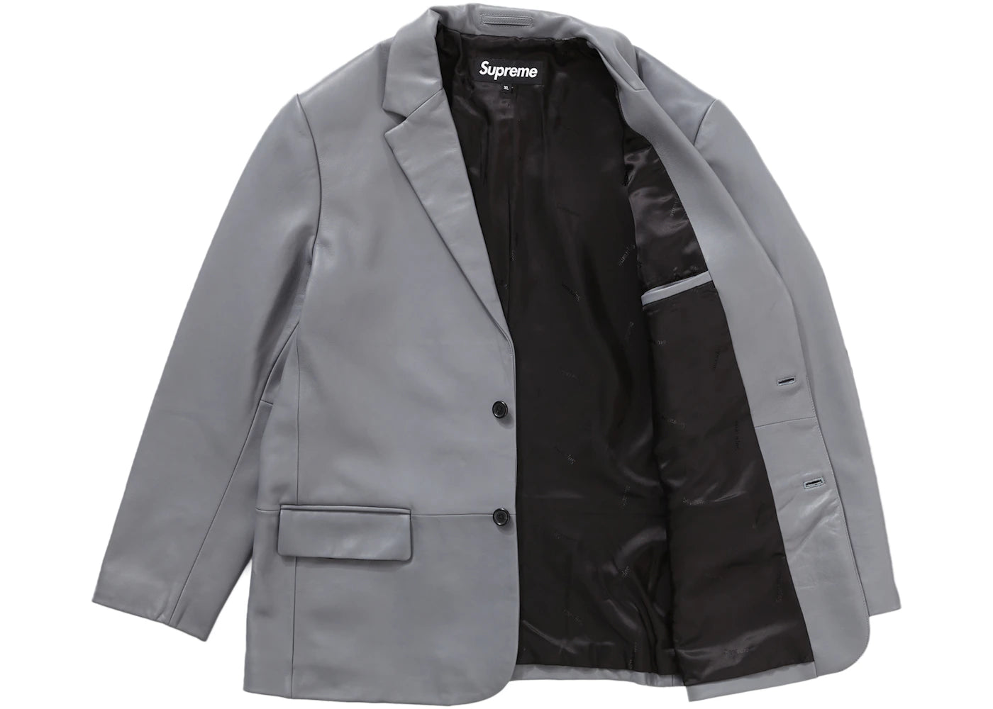 The Supreme Leather Blazer (FW22) Grey is now available at Side Kicks!