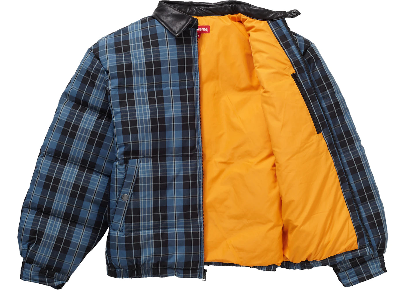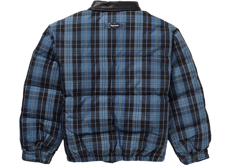 Supreme Leather Collar Puffy Jacket Blue Plaid