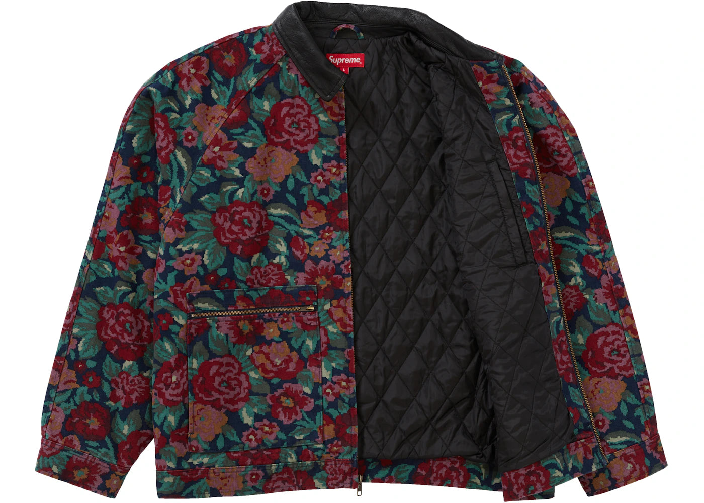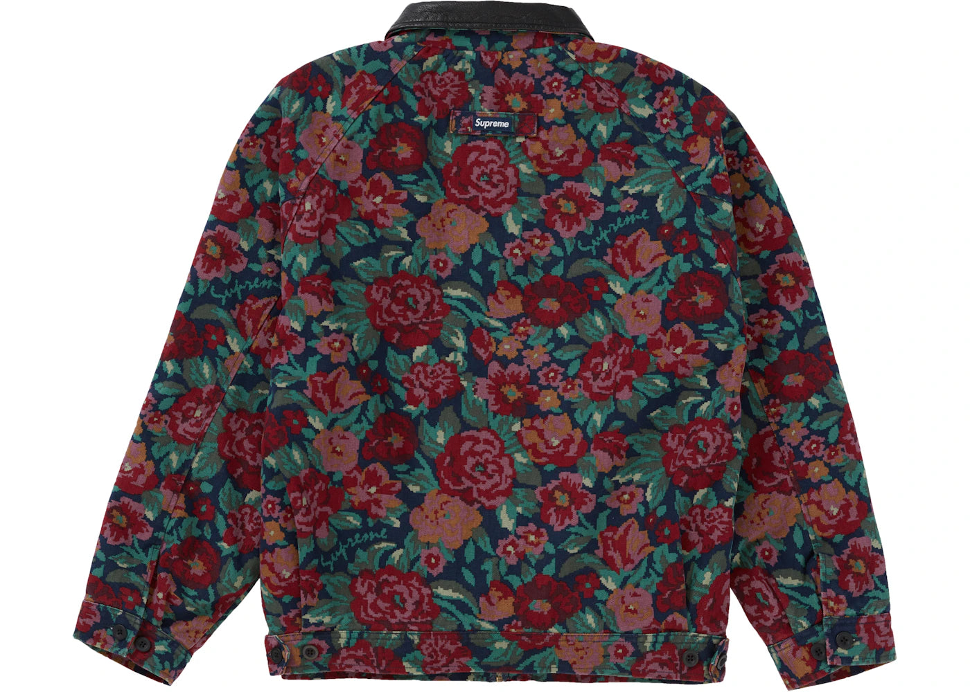 The Supreme Leather Collar Work Jacket Digi Floral is now available at Side Kicks!