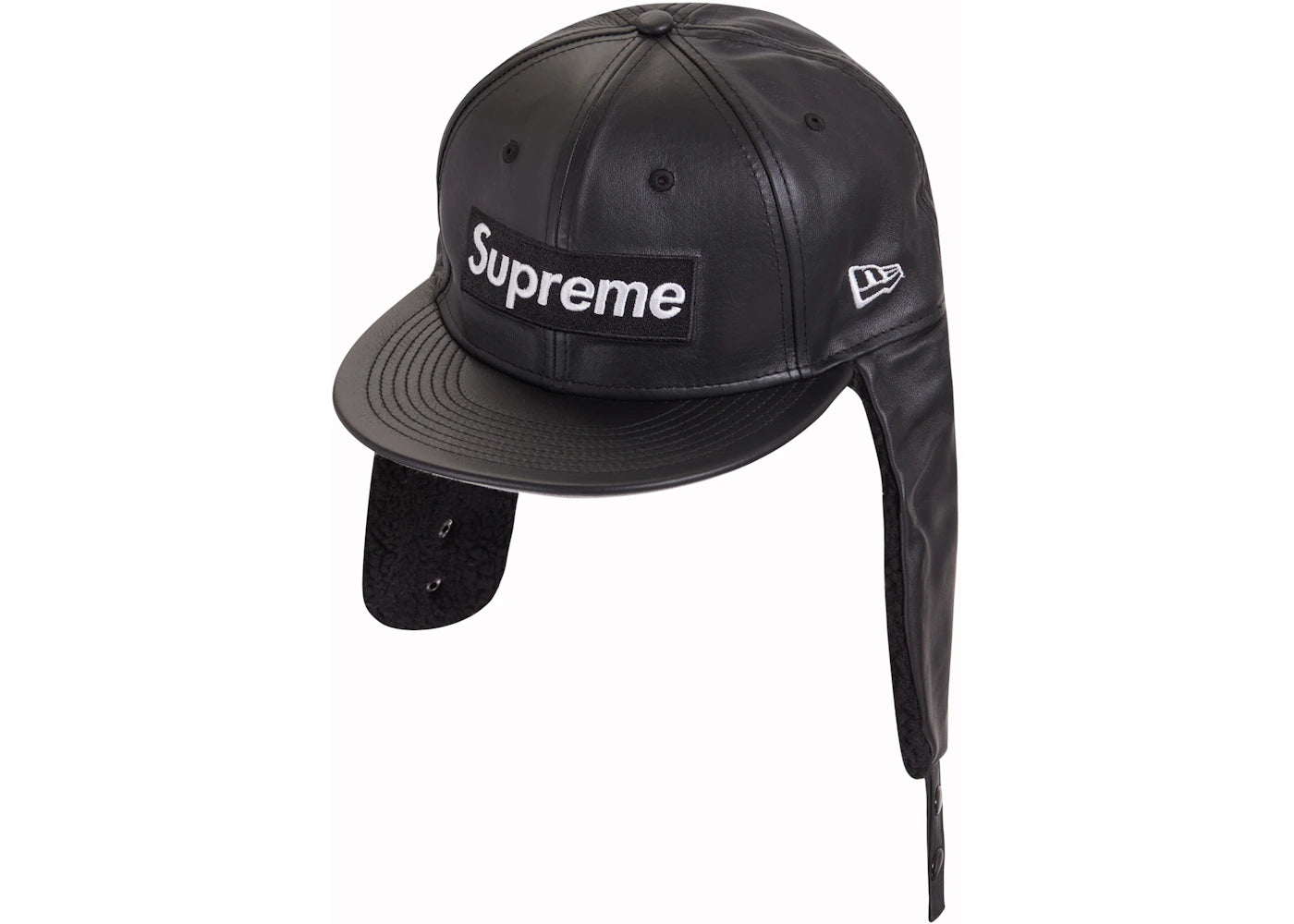 The Supreme Leather Earflap Box Logo New Era Black is now available at Side Kicks!