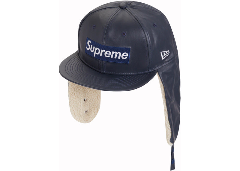 The Supreme Leather Earflap Box Logo New Era Navy is now available at Side Kicks!