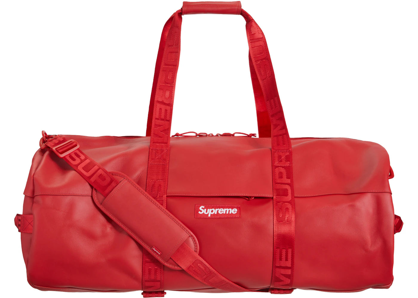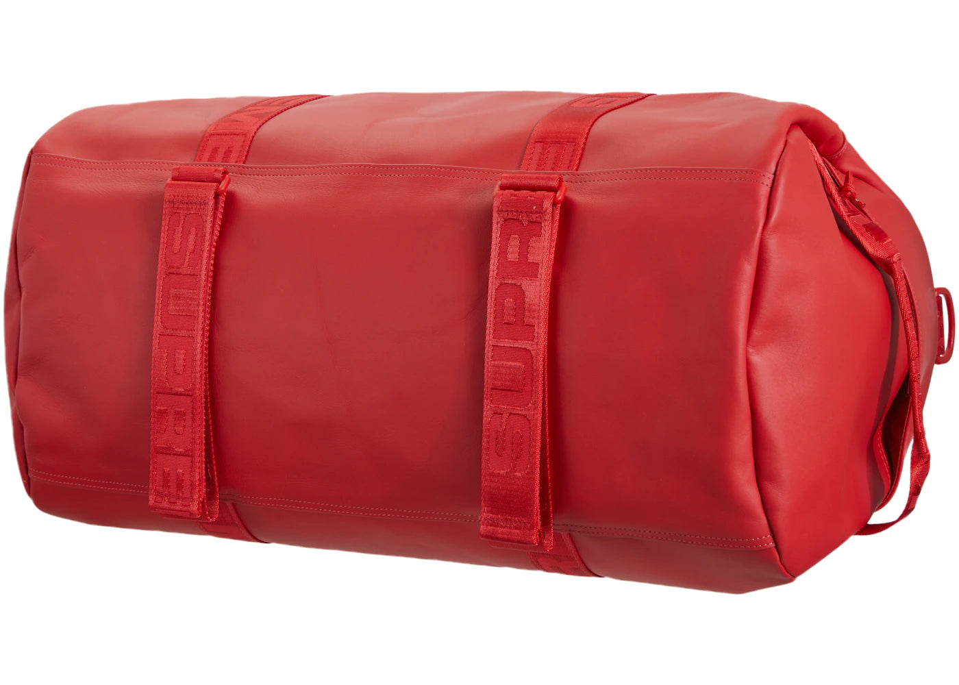 The Supreme Leather Large Duffle Bag Red is now available at Side Kicks!