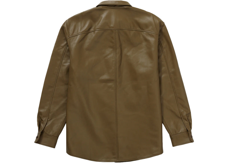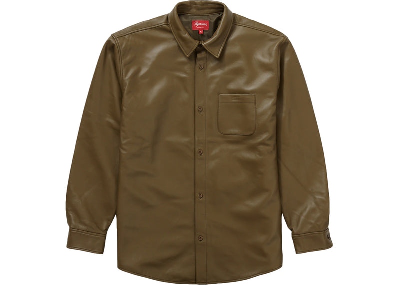 The Supreme Leather Shirt Olive is now available at Side Kicks!
