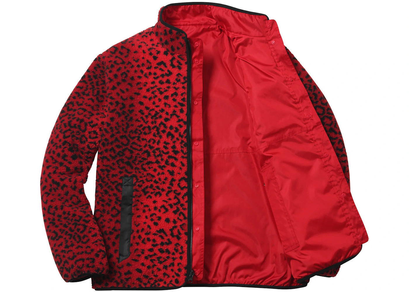The Supreme Leopard Fleece Reversible Jacket Red is now available at Side Kicks!