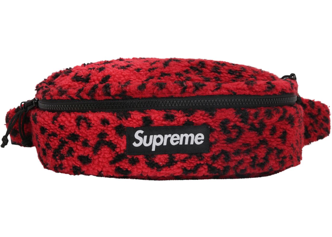 The Supreme Leopard Fleece Waist Bag Red is now available at Side Kicks!