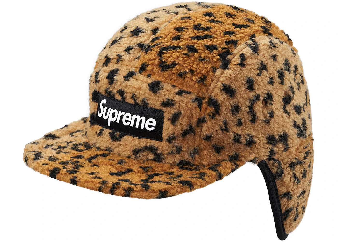 Supreme Leopard Polar Fleece Earflap Camp Cap Gold