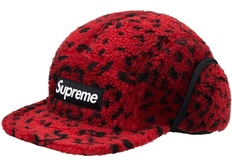 The Supreme Leopard Polar Fleece Earflap Camp Cap Red is now available at Side Kicks!