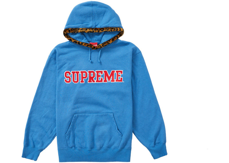 The Supreme Leopard Trim Hooded Sweatshirt Pale Royal is now available at Side Kicks!