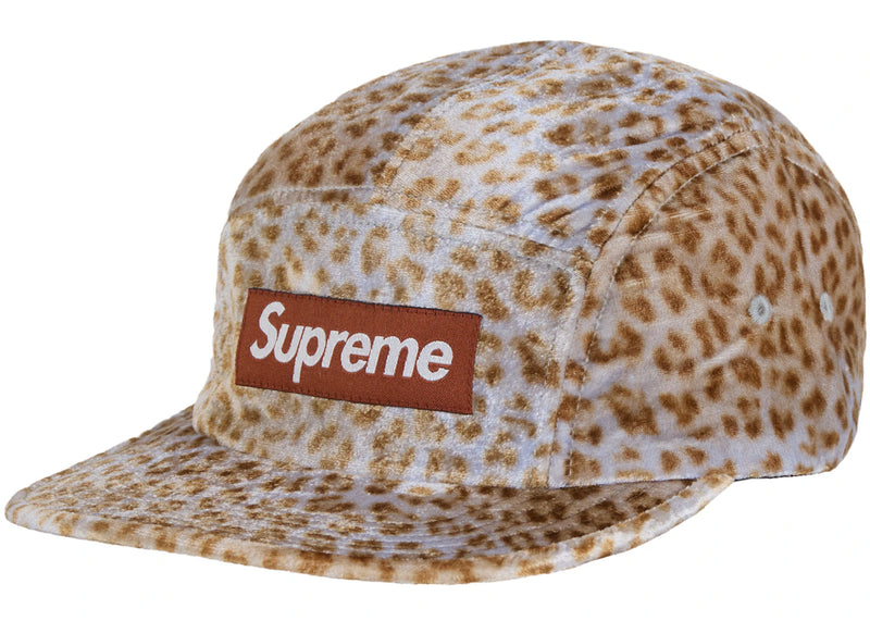 Supreme Leopard Velvet Camp Cap Tan