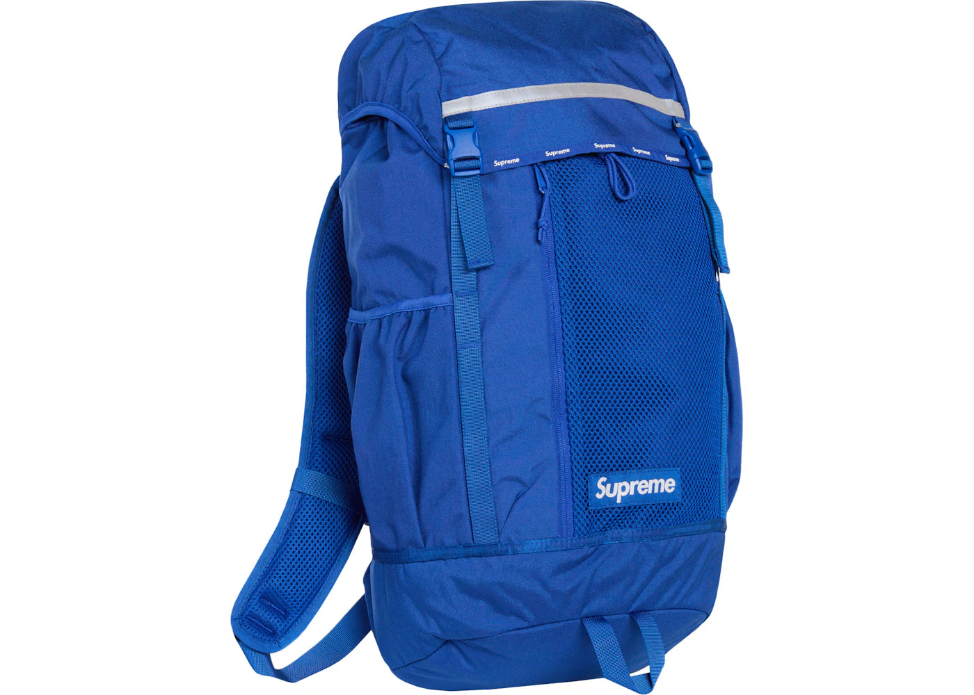 The Supreme Logo Backpack (FW24) Blue is now available at Side Kicks!