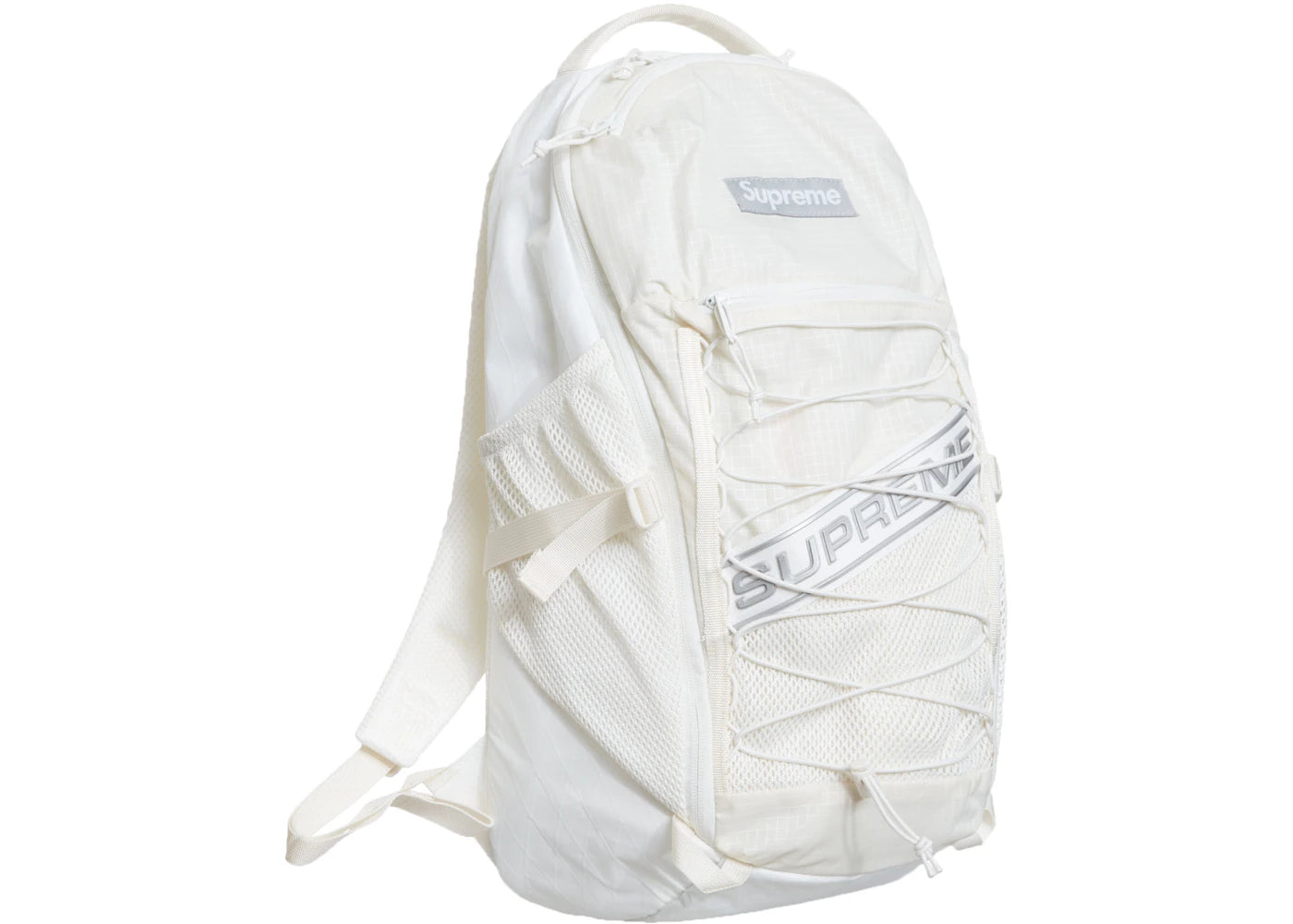 The Supreme Logo Backpack White is now available at Side Kicks!