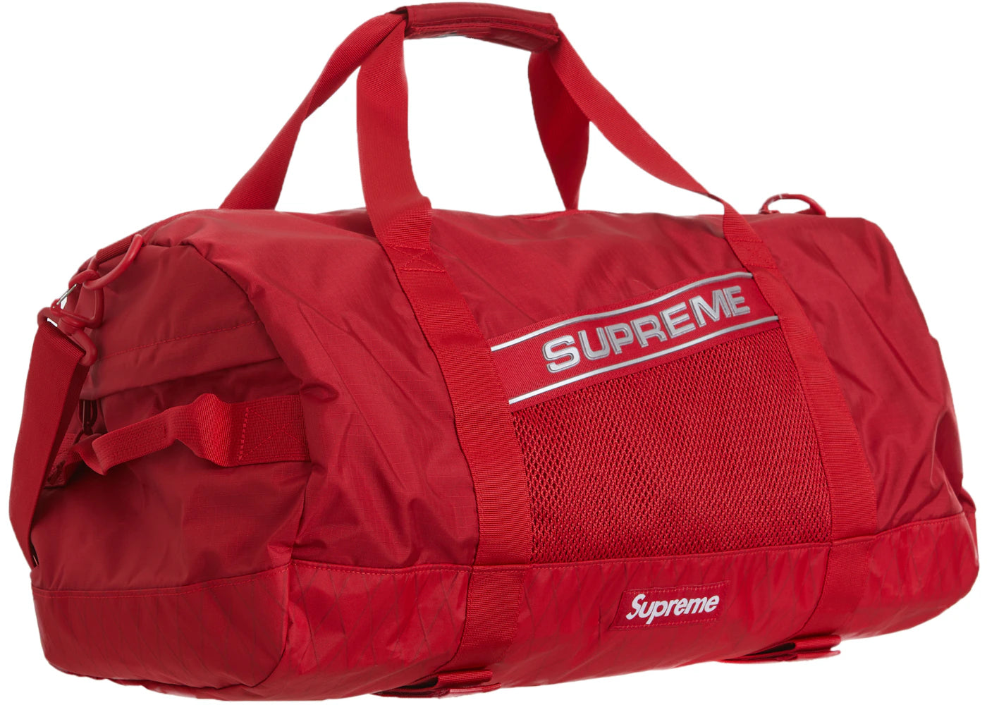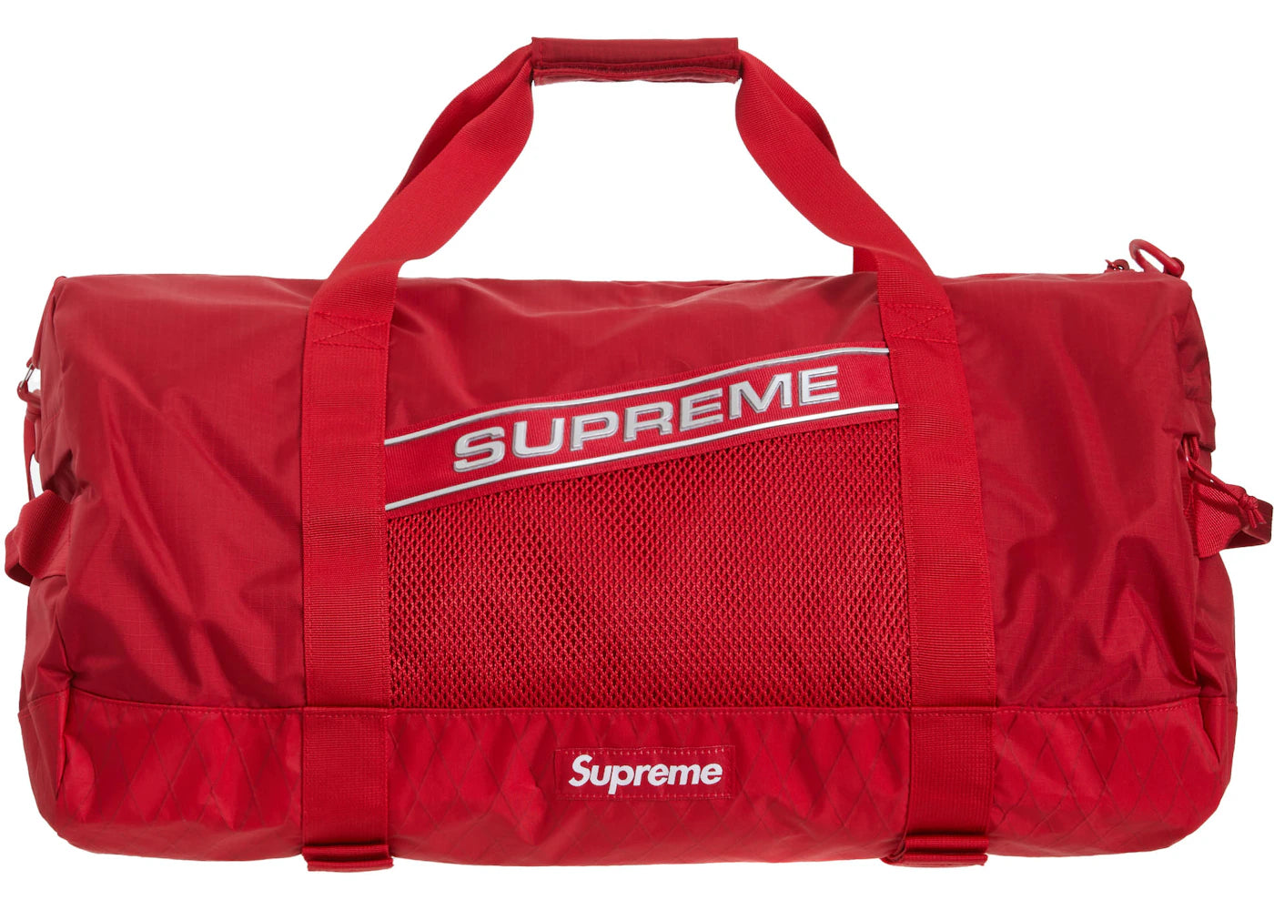 The Supreme Logo Duffle Bag Red is now available at Side Kicks!