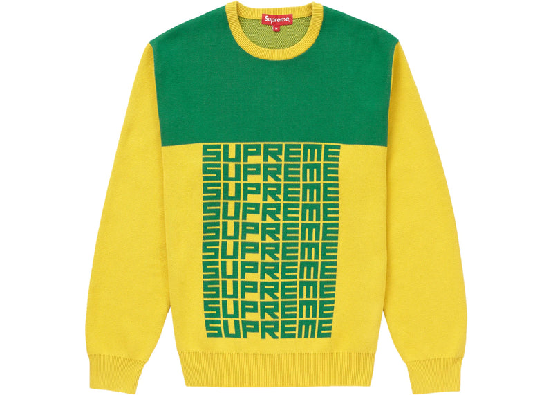 The Supreme Logo Repeat Sweater Yellow is now available at Side Kicks!
