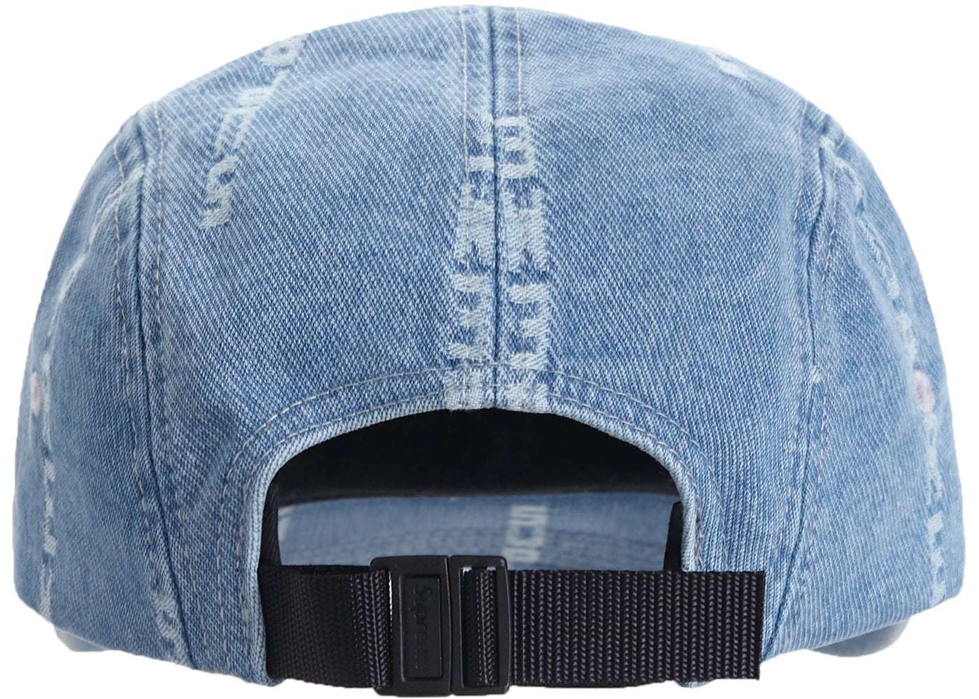 Supreme Logo Stripe Jacquard Denim Camp Cap Blue