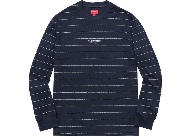 The Supreme Logo Stripe L/S Top Navy is now available at Side Kicks!