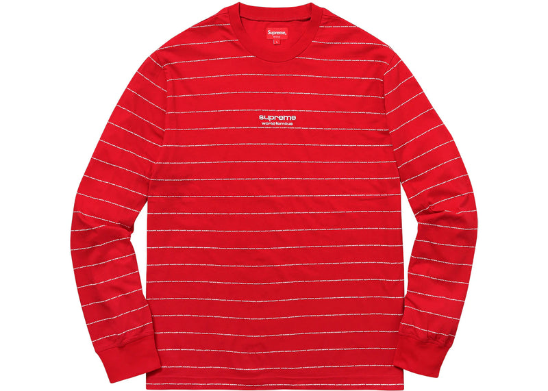 The Supreme Logo Stripe L/S Top Red is now available at Side Kicks!
