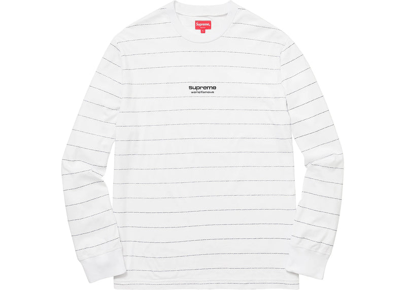 The Supreme Logo Stripe L/S Top White is now available at Side Kicks!