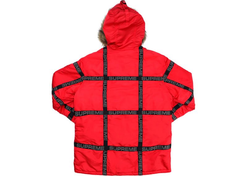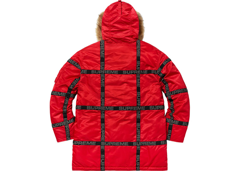 The Supreme Logo Tape N-3B Parka Red is now available at Side Kicks!